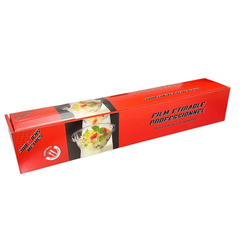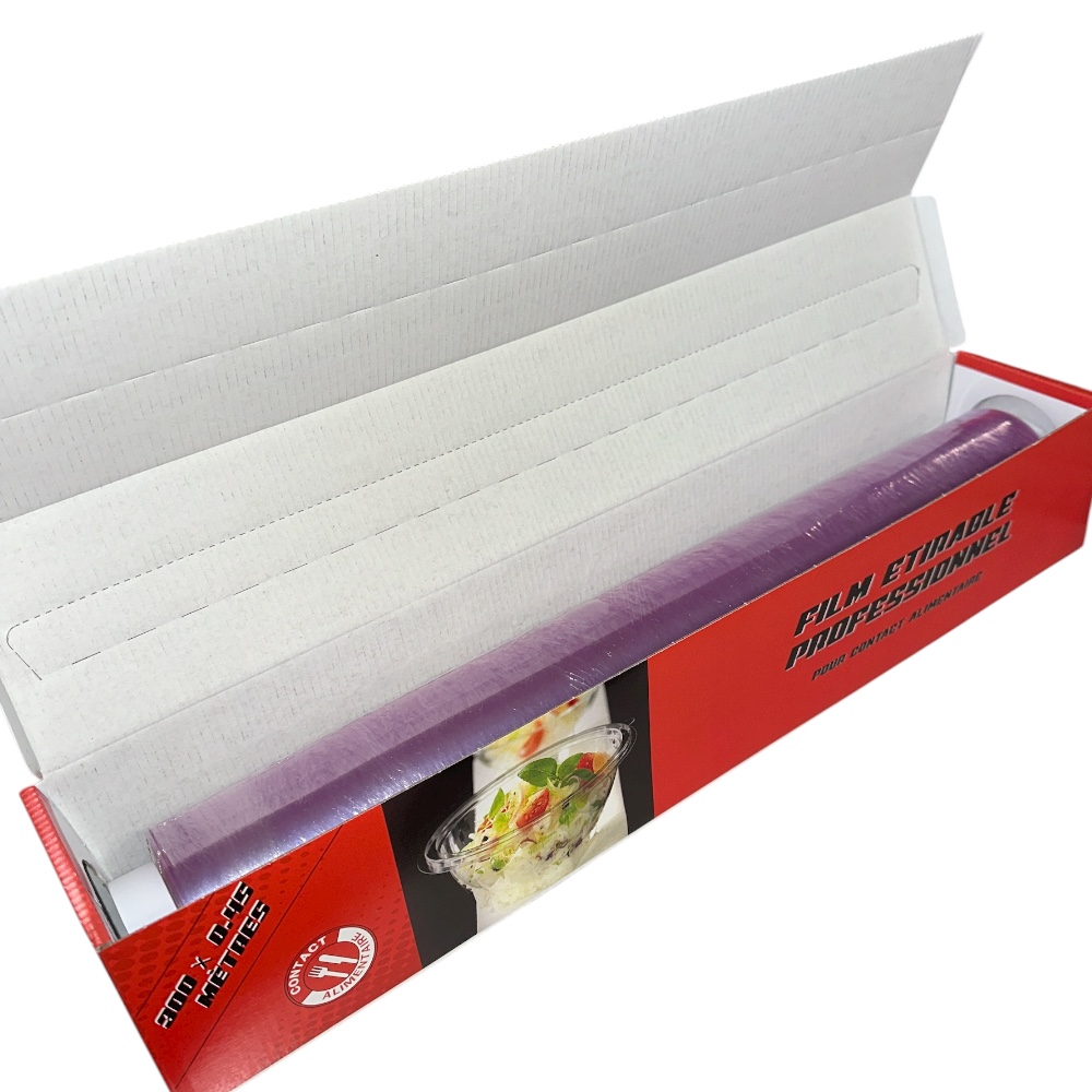 Ce film étirable professionnel pour contact alimentaire est très résistant et protégera tout vos plats.