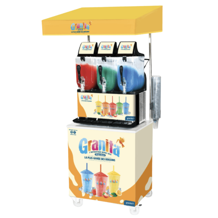 “Roller Junior” comprend la machine à Granita GR330 3cuves et son chariot.